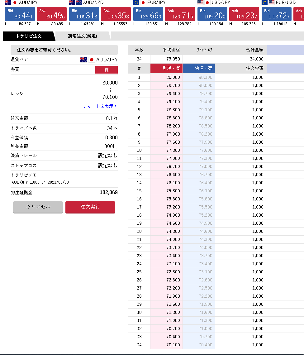 これで、トラリピの上の方のポジを相殺できたらいいなと思うけど、、。